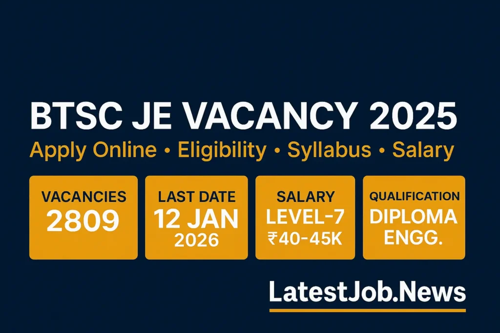 BTSC JE Recruitment 2025 : Apply Online for 2809 Junior Engineer Posts | Eligibility, Syllabus, Salary, Selection Process latest job / manish Kumar